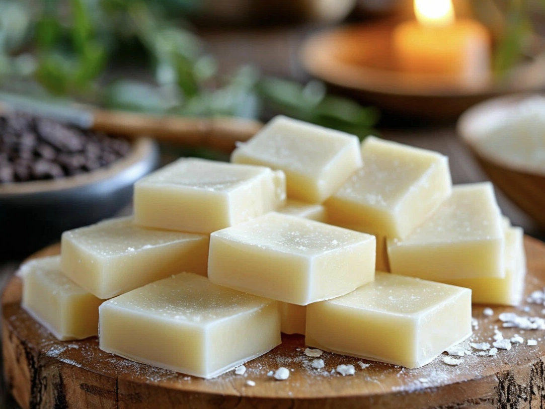 - Свойства: Кокосовый воск белого цвета, легкой текстуры и низкой температуры плавления (около 35-40 °C). Он также хорошо смешивается с ароматами и создает приятный свет при горении.